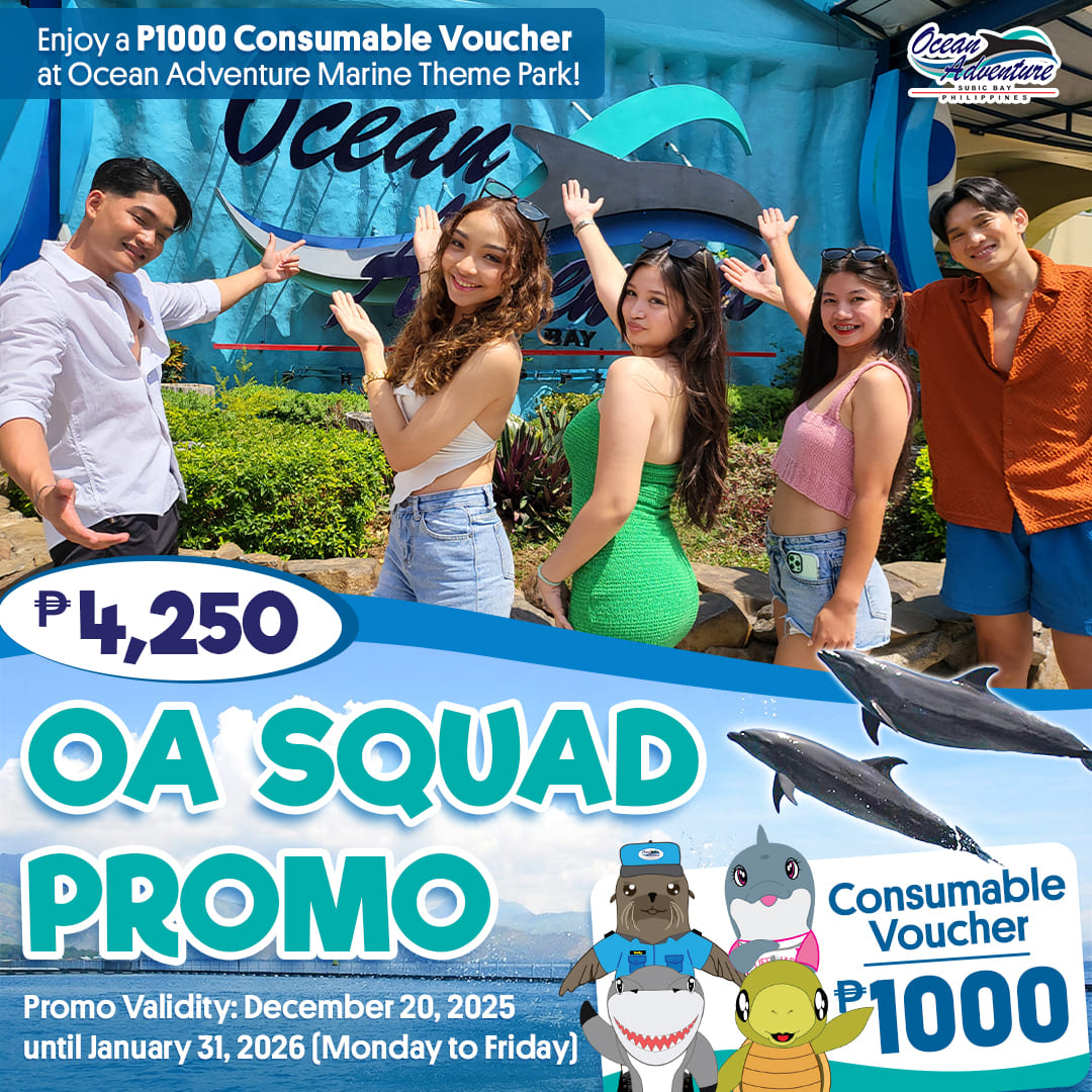 Selling Price: OA SQUAD PROMO Php 4,250.00 (good for 5 adult people)